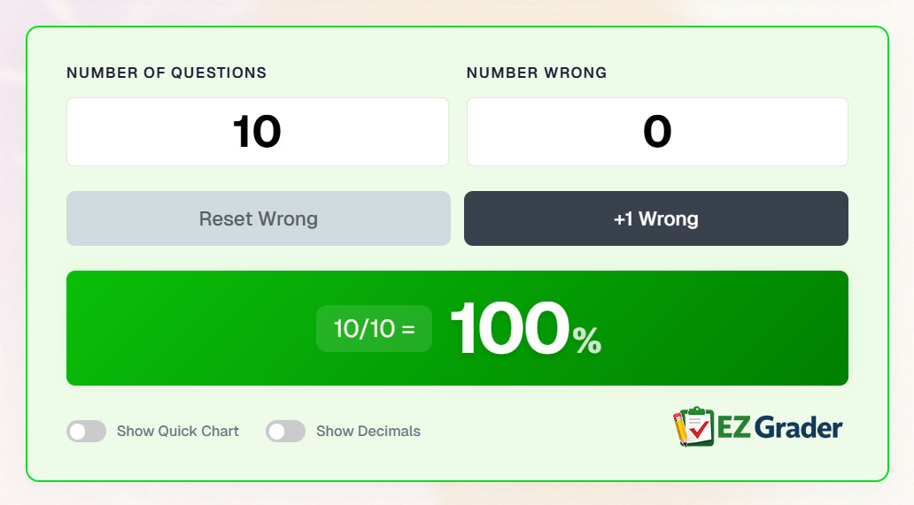 This tool is especially helpful for grading quizzes, tests, assignments, and exams. Whether you’re grading 10 papers or 100, an EZ Grader saves time and eliminates manual calculation errors.